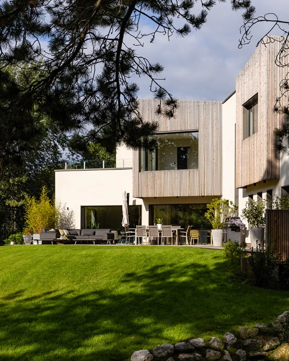 In each of our home interior design projects, we pay particular attention to the exterior façade, as it is the visual entrance to the space. Working closely with the architect, we ensure that it harmonizes with the interior, while reflecting the identity of the occupants and the spirit of the home. Every detail, whether it be materials, colors, or proportions, is carefully considered to create a fluid and aesthetic transition between the exterior and interior.