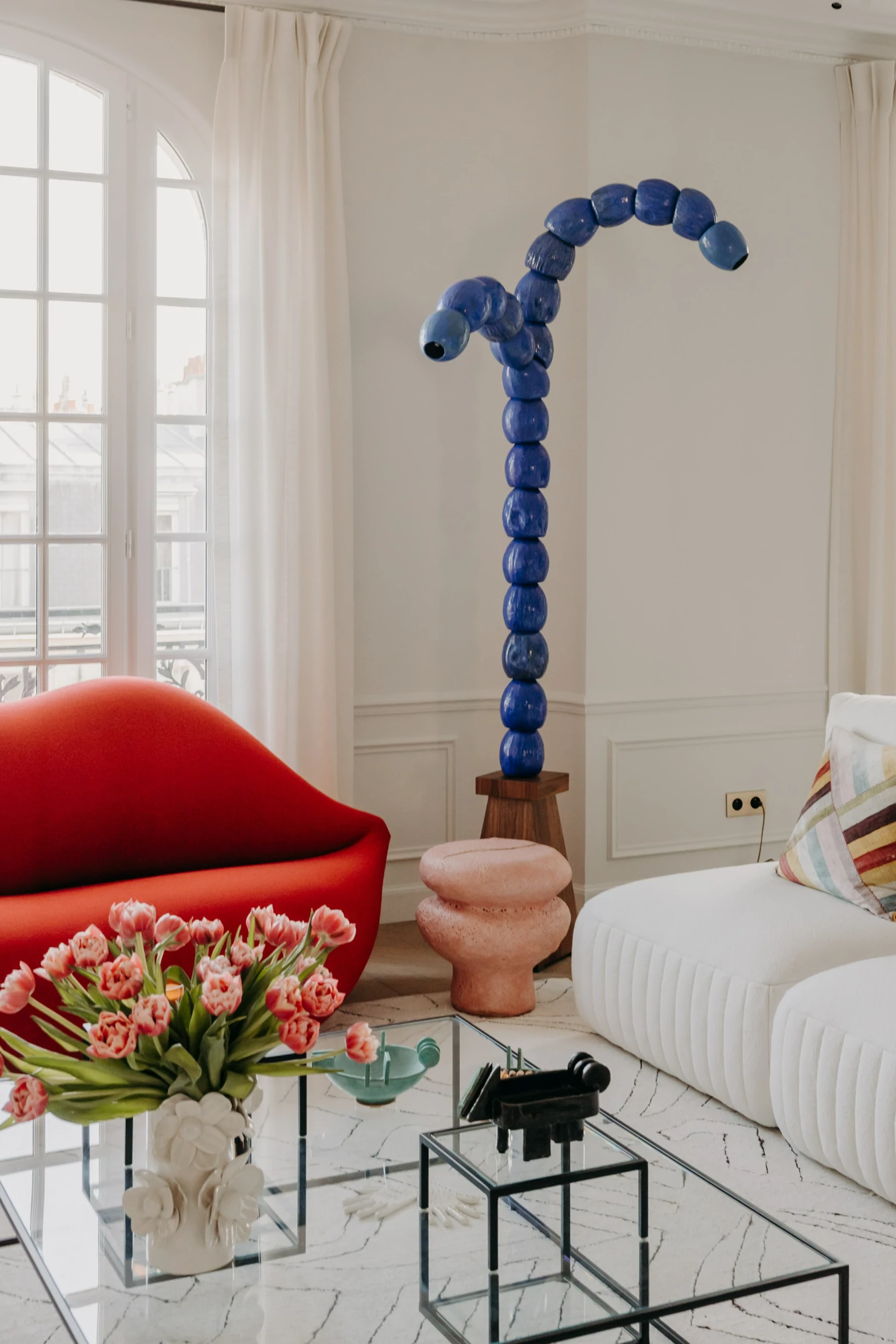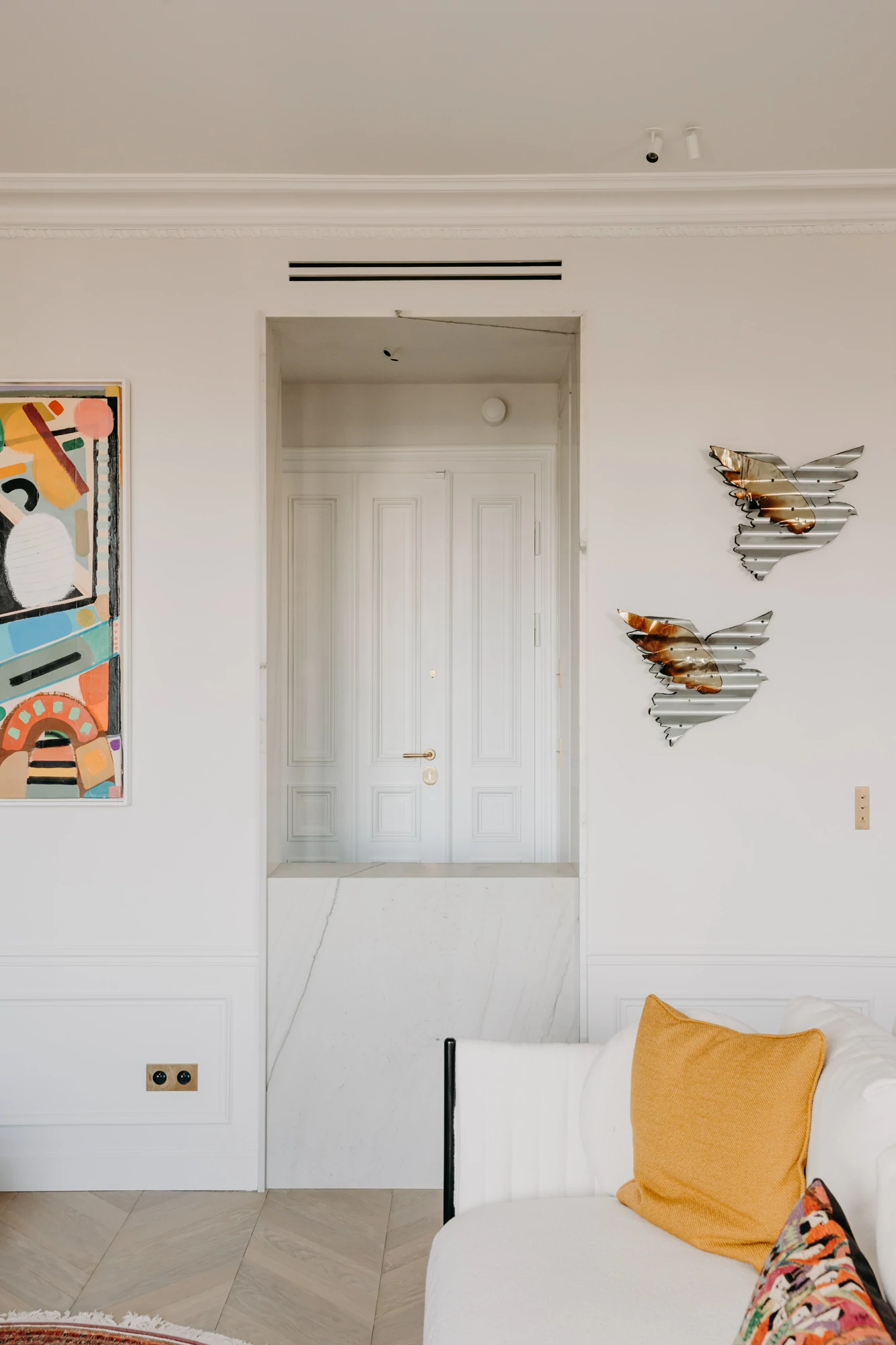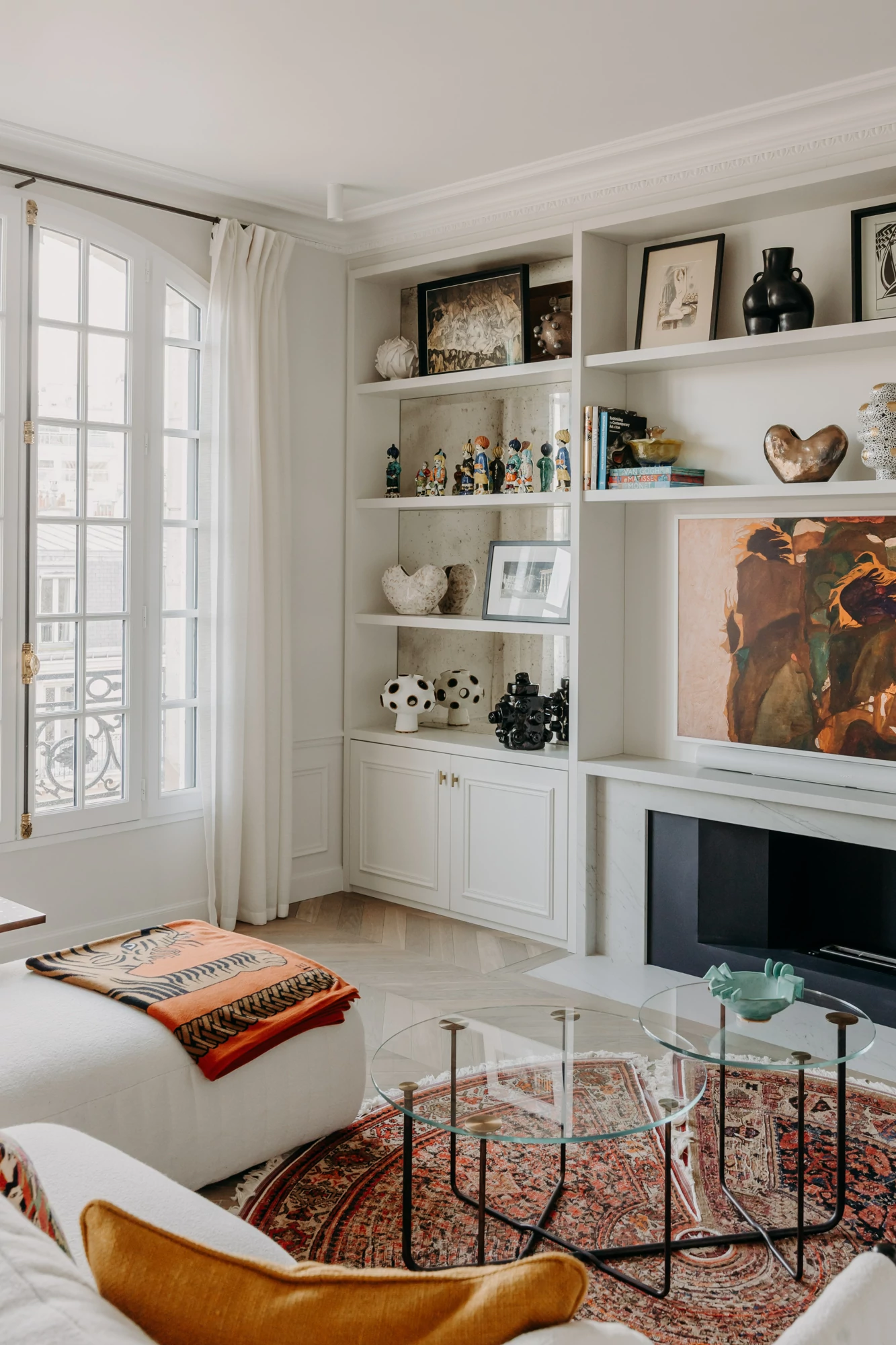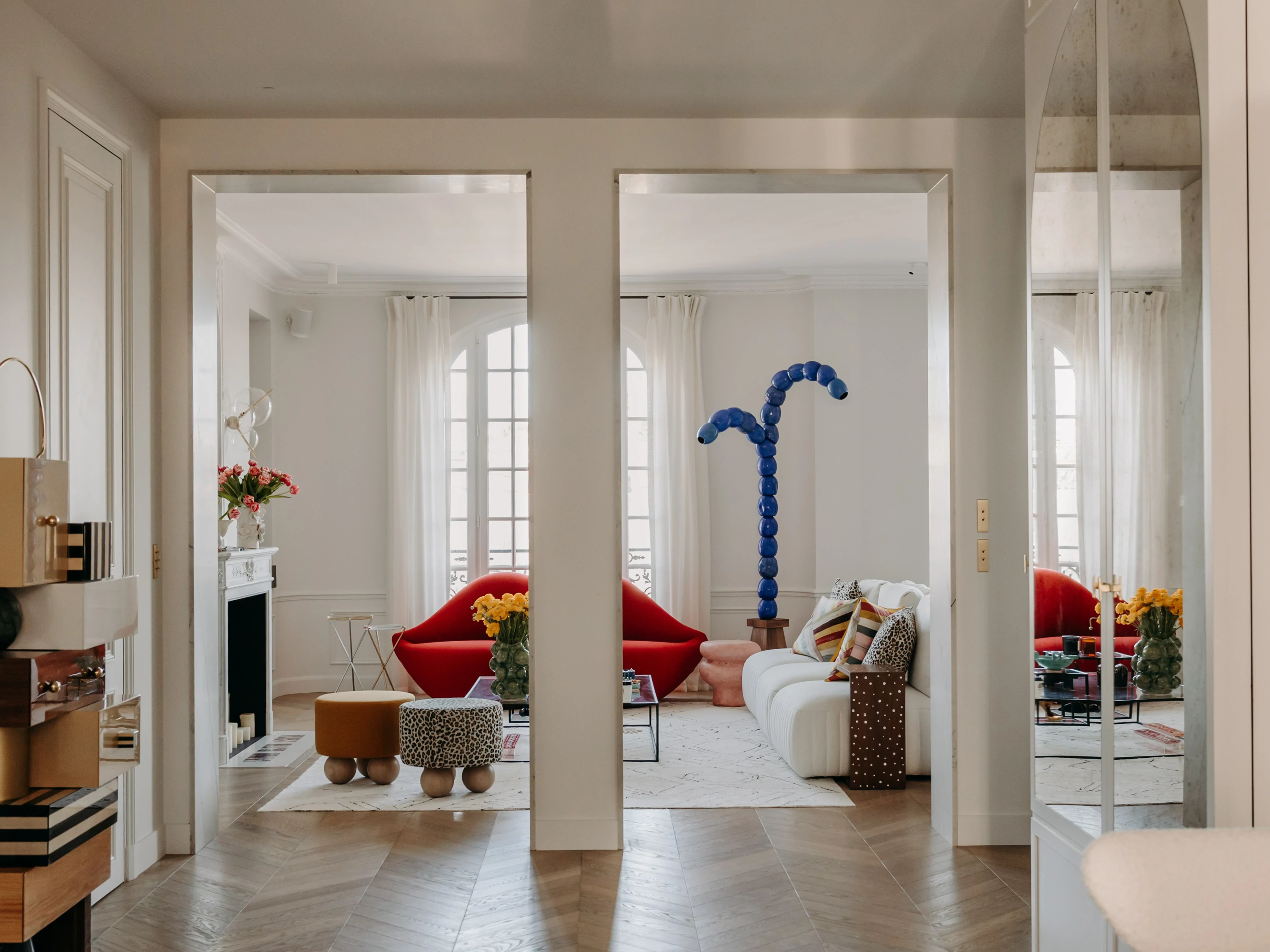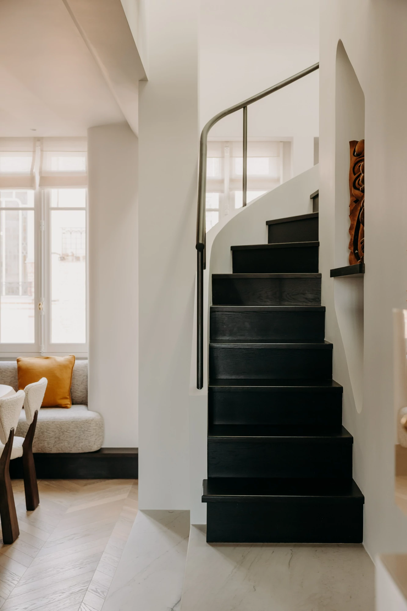 Just a stone's throw from the Eiffel Tower, this duplex was designed as a gathering place for a family that lives primarily abroad. It was intended to offer comfort, functionality, and a warm, welcoming atmosphere, while allowing each family member to maintain their independence. The goal was to create three bedrooms with en-suite shower rooms and walk-in closets, as well as a separate office, within a warm and inviting setting conducive to entertaining and family life.